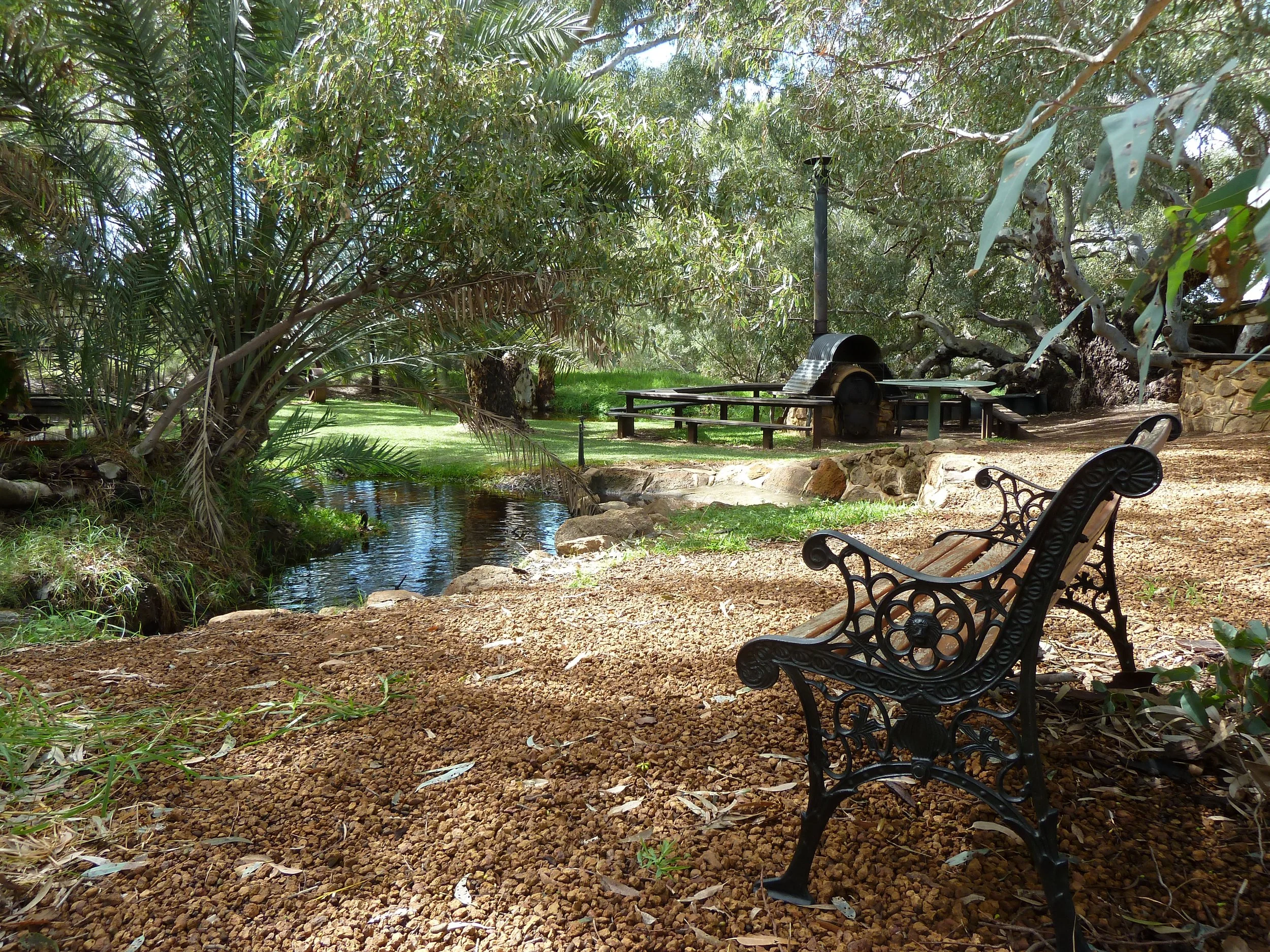 A short stroll from the Bush Tub, this peaceful spot is surrounded by trees and tranquil waters.